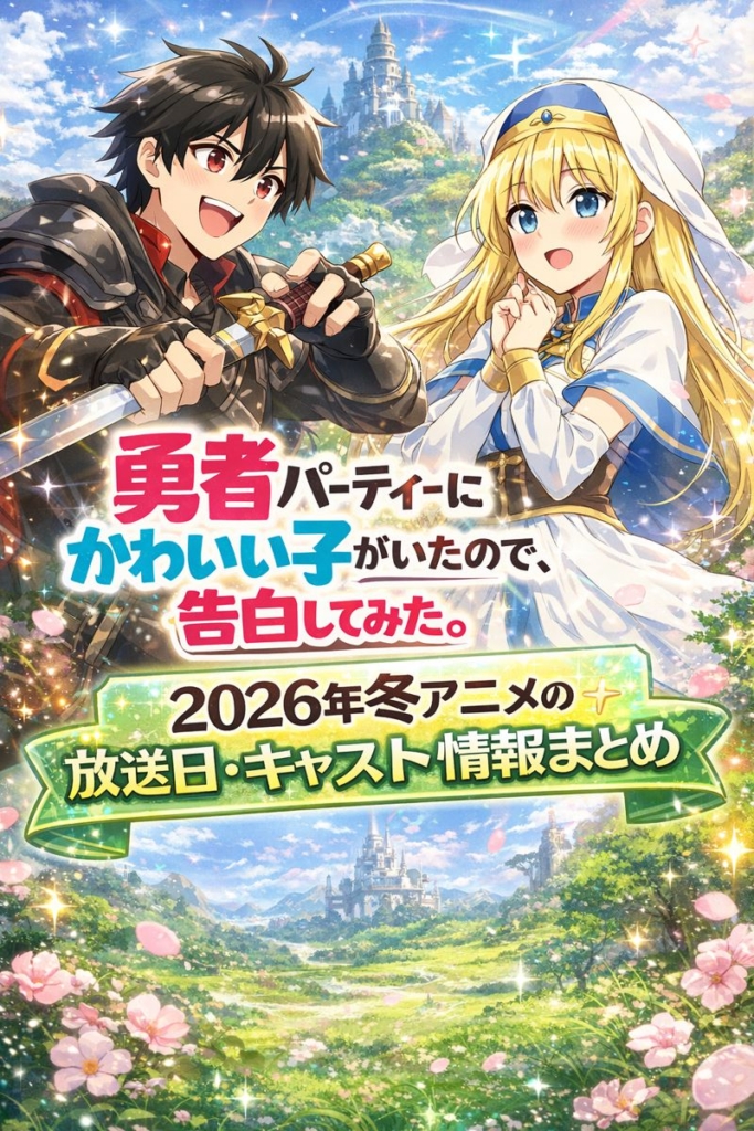 2026年冬アニメとして注目を集めている「勇者パーティーにかわいい子がいたので、告白してみた。」が、ついに放送スタートします。 本記事では、アニメ版「勇者パーティーにかわいい子がいたので、告白してみた。」のあらすじや魅力、豪華キャスト陣、放送... -
