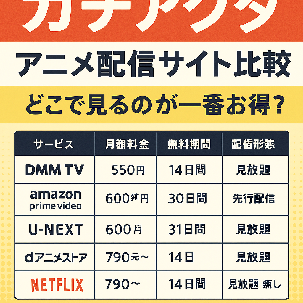 2025年夏アニメとして放送が始まった『ガチアクタ』。「どの配信サイトで見られるの?」「一番お得に視聴できるのはどこ?」と気になる方も多いはず。この記事では、『ガチアクタ』を配信している主要VOD(動画配信サービス)を徹底比較し、料金・特典・先... -