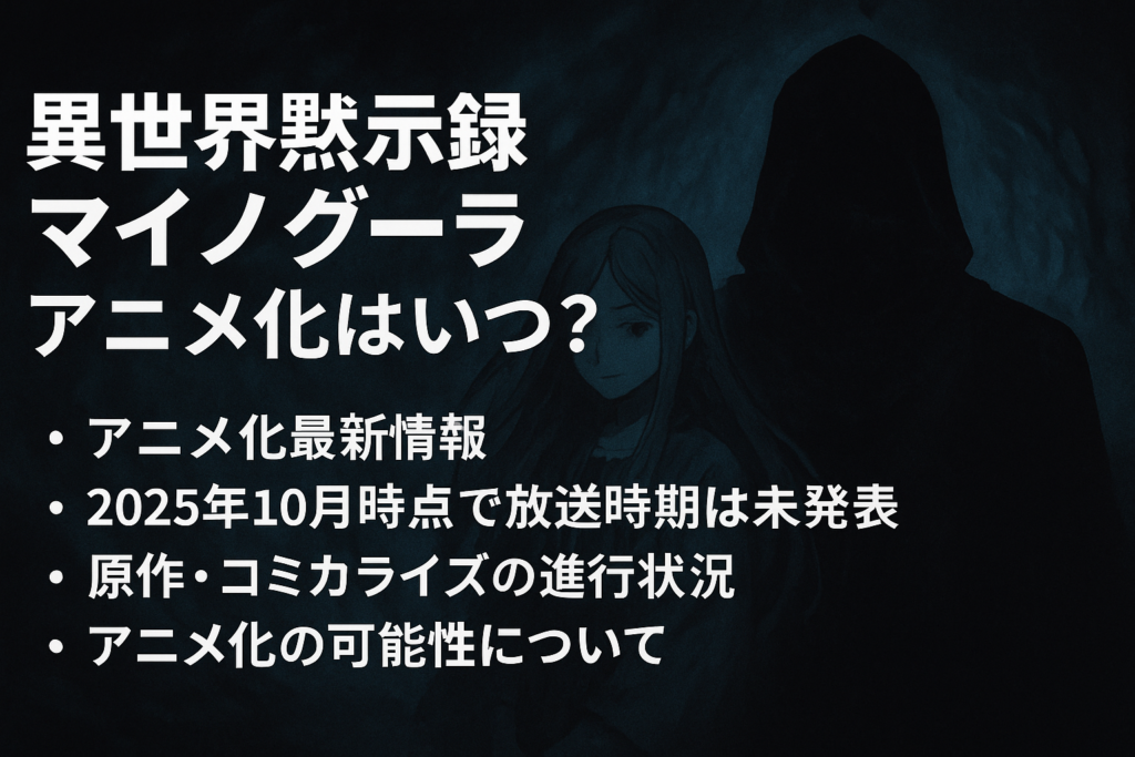 異世界黙示録マイノグーラのアニメ化が正式に発表され、ファンの間で大きな注目を集めています。 本記事では「異世界黙示録マイノグーラ アニメ化はいつ?放送時期や最新情報まとめ」というキーワードで検索している方に向けて、放送開始日や放送局、配信... -