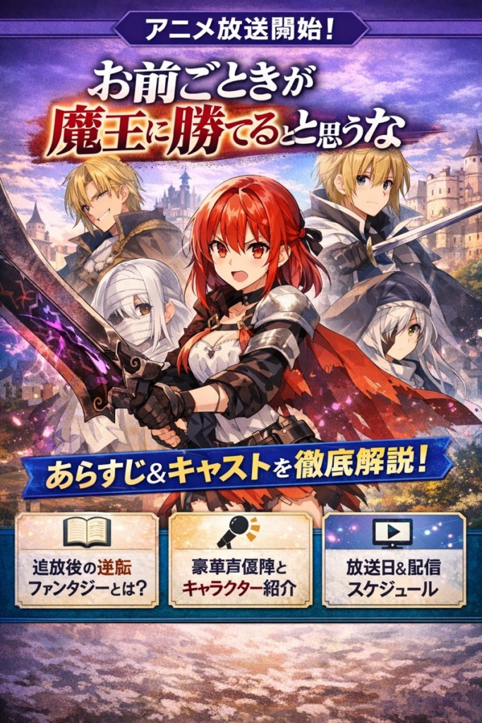 2026年1月放送開始のTVアニメ『お前ごときが魔王に勝てると思うな』は、勇者パーティから追放された少女・フラムの壮絶な逆転劇を描いた話題の作品です。 原作はGCノベルズから刊行されている同名ライトノベルで、追放×成長×ダークファンタジーの要素が詰... -
