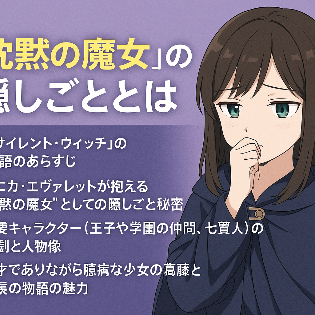 近年はアニメ化も決定し、ファンタジー作品ファンからも注目を集めています。そこで今回は、『沈黙の魔女の隠しごと』のあらすじや世界観をはじめ、個性豊かな登場キャラについても詳しく解説します。